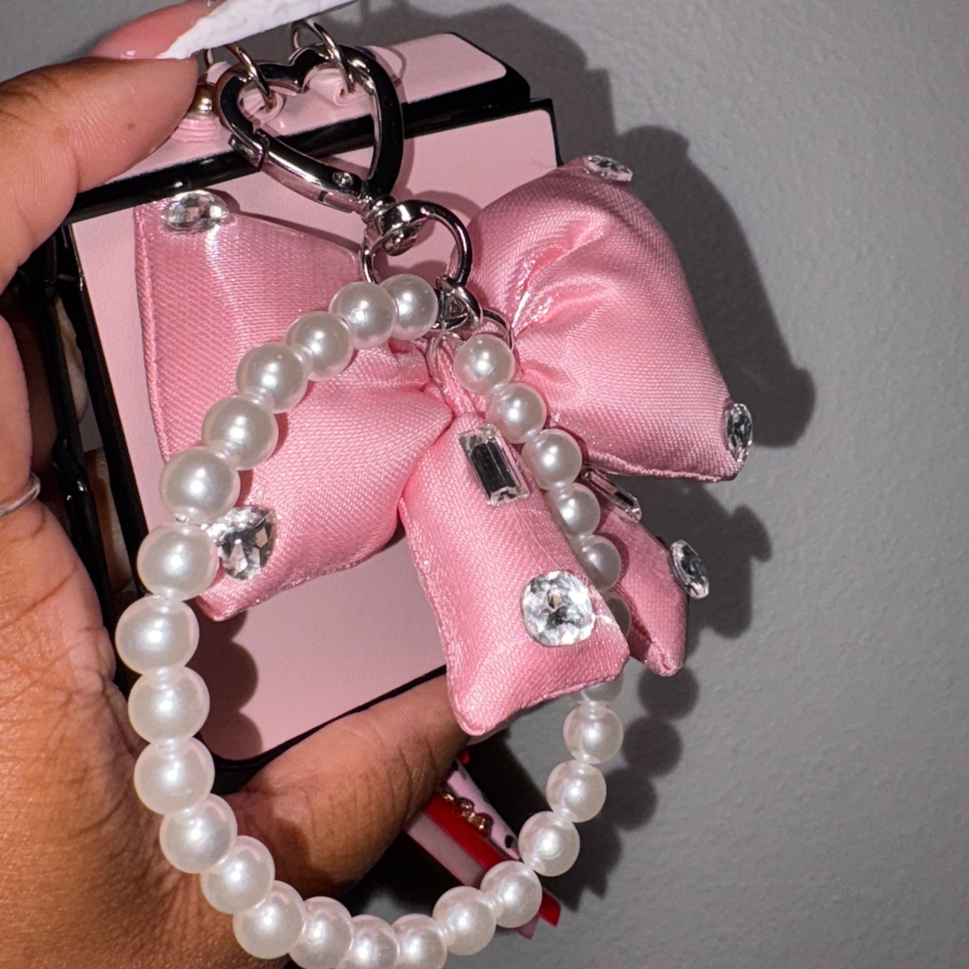 - Includes a luxury bow charm with diamonds and pearls