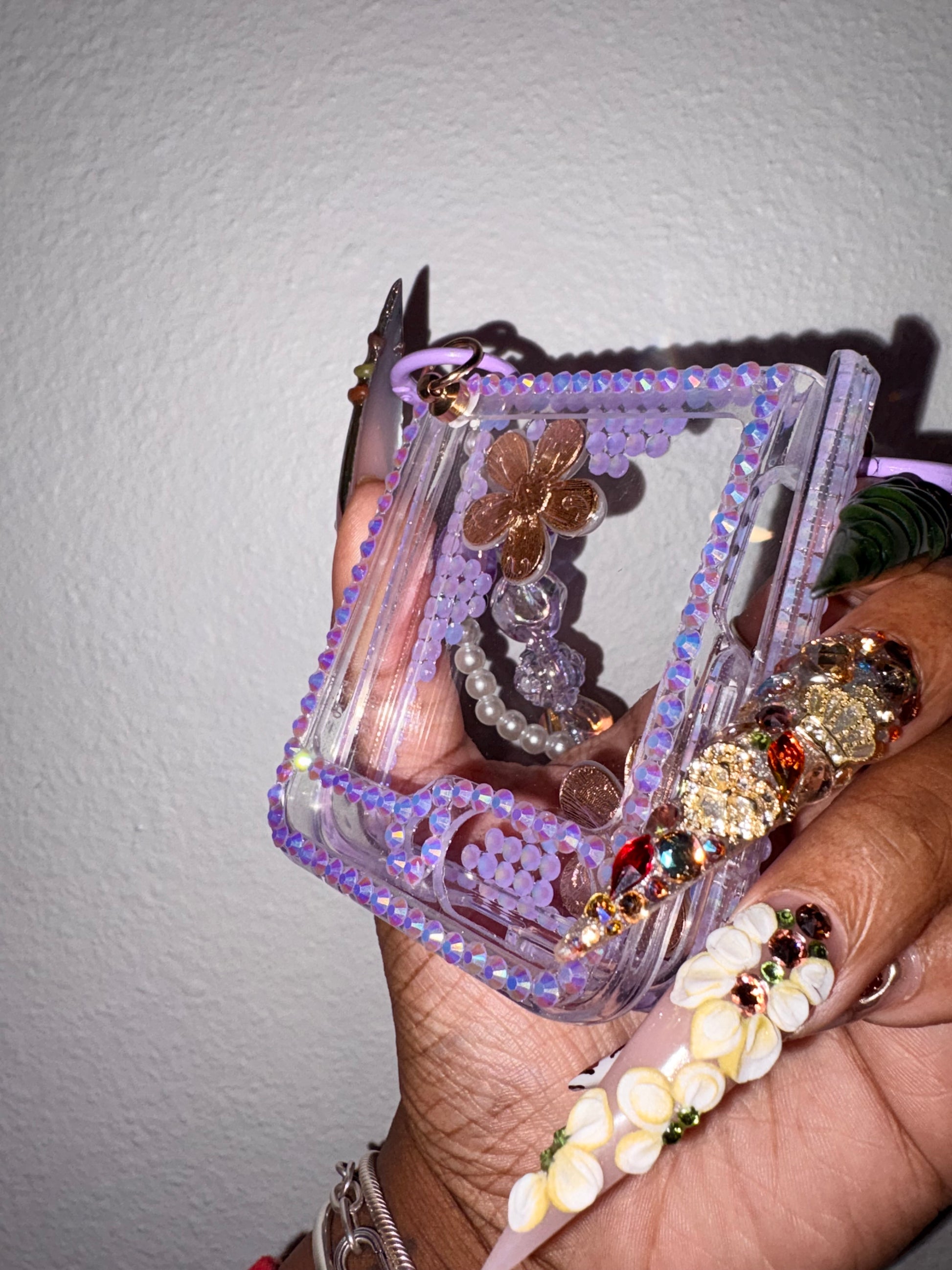 Get swept away in girly glam with this dreamy Samsung Galaxy Z Flip 7 case! She’s giving full wedding vibes 👰🏽💐 with sparkling bling on the back and a dazzling bedazzled charm that catches the light with every move. The see-through design lets your phone’s true color shine through while adding that extra sparkle every pretty girl deserves. 💖📱